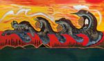 Anishnaabe artist Russell M. Noganosh was born in his grandmother’s home on Henvey Inlet First Nation in 1956. In 1979, Russell apprenticed under Isaac Bignell from The Pas, Manitoba, where he first learned the sponge technique of painting, and for the next 40 years he dedicated himself to perfecting and forming his own style of contemporary and traditional art themes. Russell works with acrylic on canvas, paper, birch bark, fungus and hide, using traditional and contemporary themes.